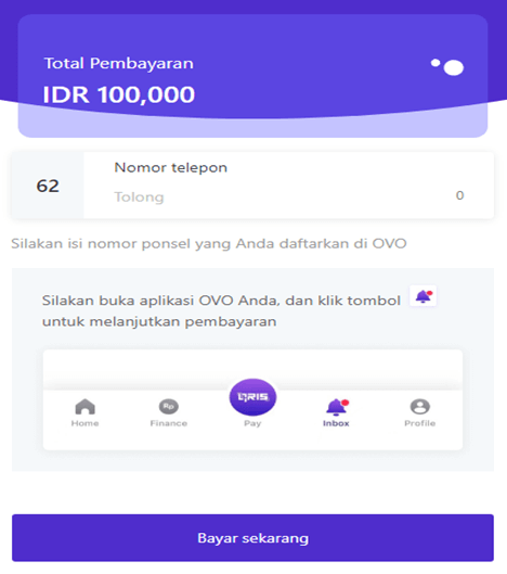- A pop-up page will display; log in to your mobile banking app and scan the QR code through your QRIS. deposit the exact amount (including the last two digits) as specified on "Total Pembayaran," then click "KONFIRMASI PEMBAYARAN".