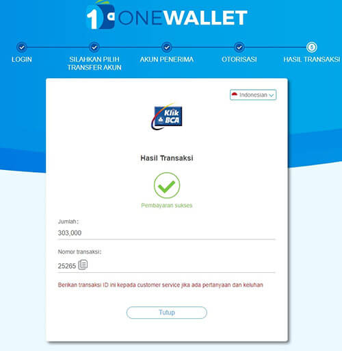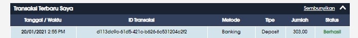 - Deposit transaction has been successful. Please keep your Transaction ID (Nomor transaksi) for reference