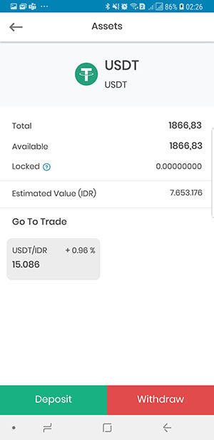 - Open and login into your Crypto platform. Steps to do Crypto currency transfer varies depending on the platform you are using. In this example, we will use “INDODAX”.
