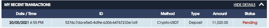 - Find your latest deposit record in "MY RECENT TRANSACTIONS".