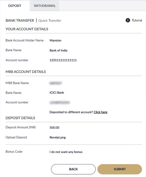 - Review your deposit detail and click "SUBMIT"