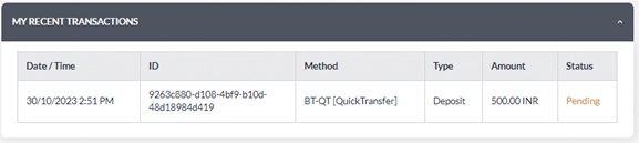 - Your transaction status will be display on MY RECENT TRANSACTIONS