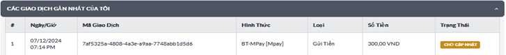 - Your transaction status will be display on MY RECENT TRANSACTIONS