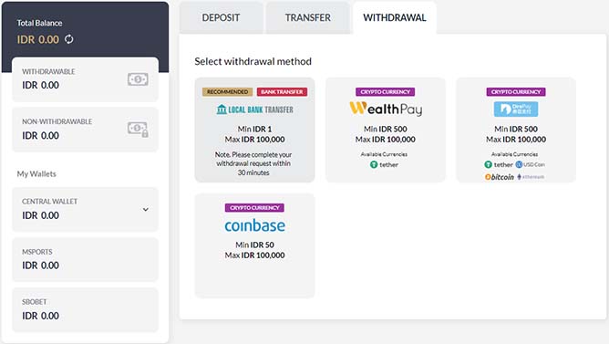 - Click DEPOSIT >> WITHDRAWAL tab >> select WEALTHPAY symbol