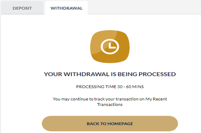 - Withdrawal request will be processed within 30-60 mins