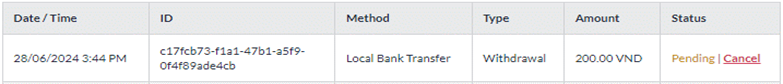 - Choose "Local Bank Transfer" icon at Withdrawal